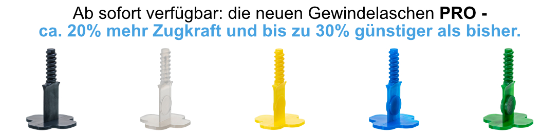 - Nach dem Aushärten des Klebers die Zughauben abdrehen und die Gewindelasche einfach an der Sollbruchstelle in Fugenrichtung abbrechen. Die Grundplatte / der "Fuß" verbleibt im Kleberbett.